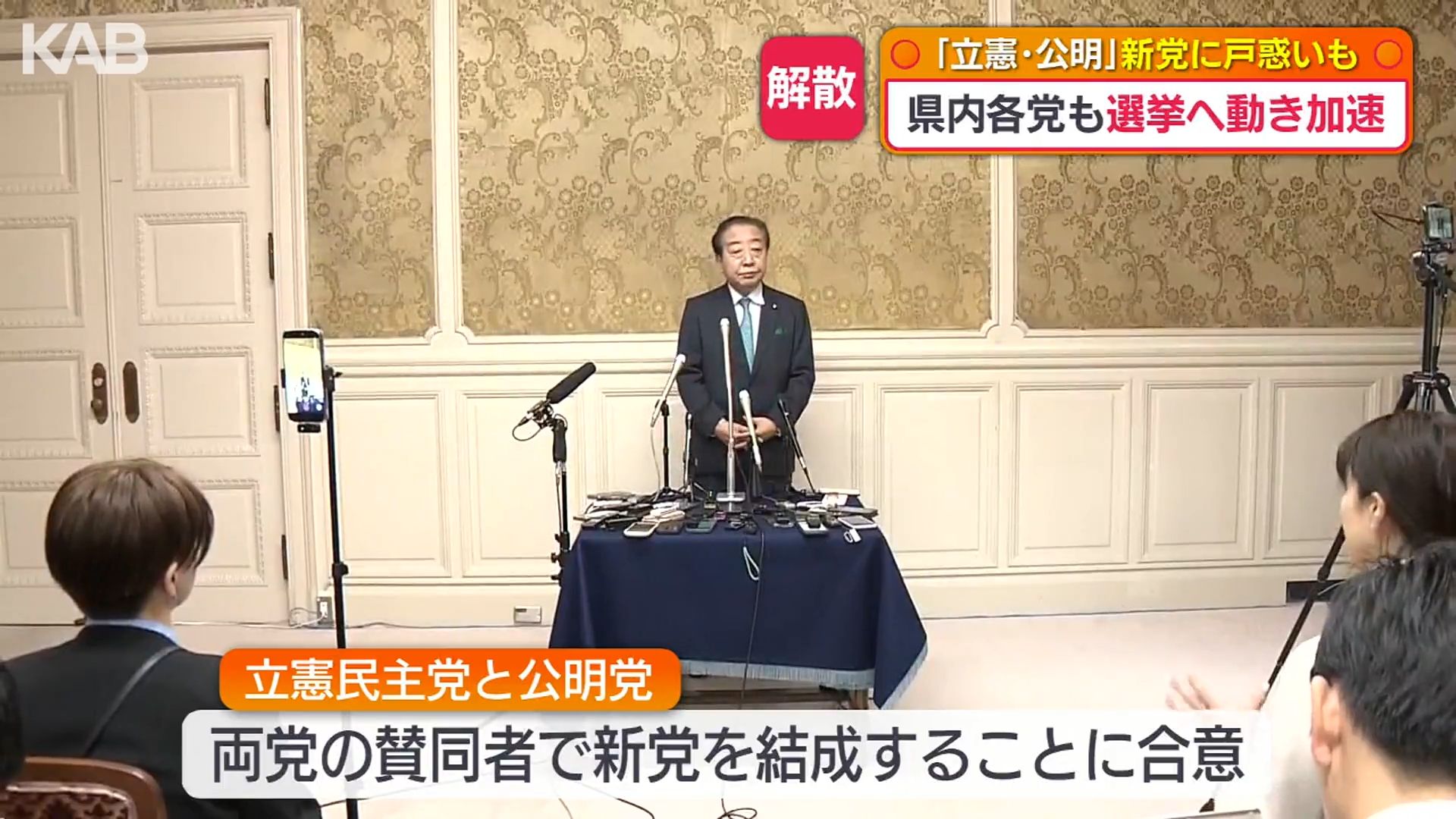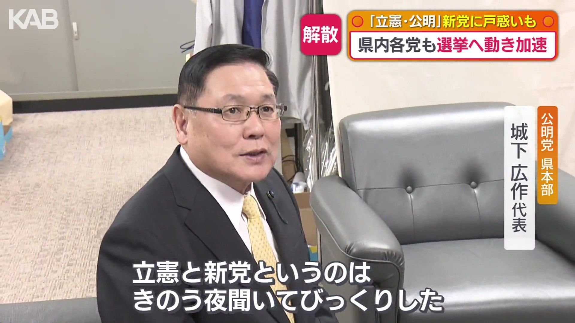 公明党熊本県本部の城下広作代表は「別に細かい話が、こうします。ああしますっていうのがまだないんです。こないんです。立憲と新党うんぬんかんぬんというのは、きのう夜聞いてびっくりした。だからその真意がわからないから、きょうはもう何も答えられません」