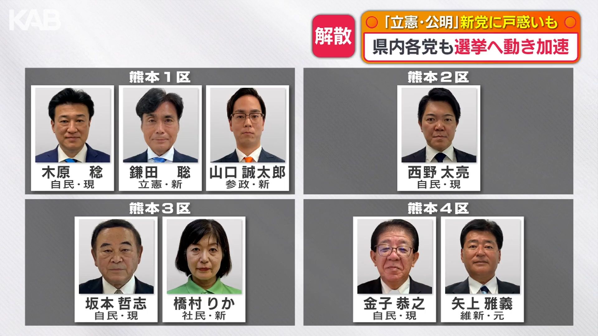 これまでのところ、衆院選熊本選挙区に立候補する意向を示しているのは、次の通りです。