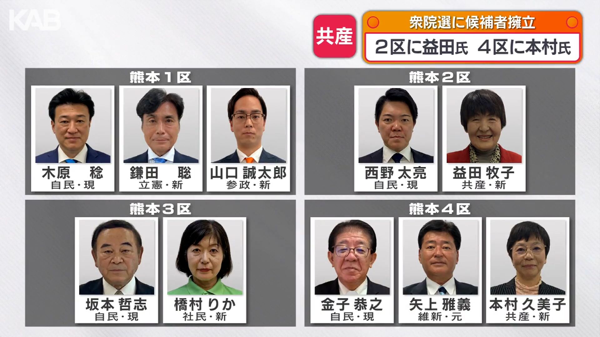 熊本県内の立候補予定者の顔ぶれ