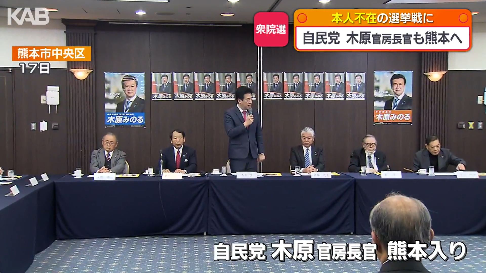 一方、自民党現職の木原稔官房長官は週末、熊本入り。党の会合に出席しました。