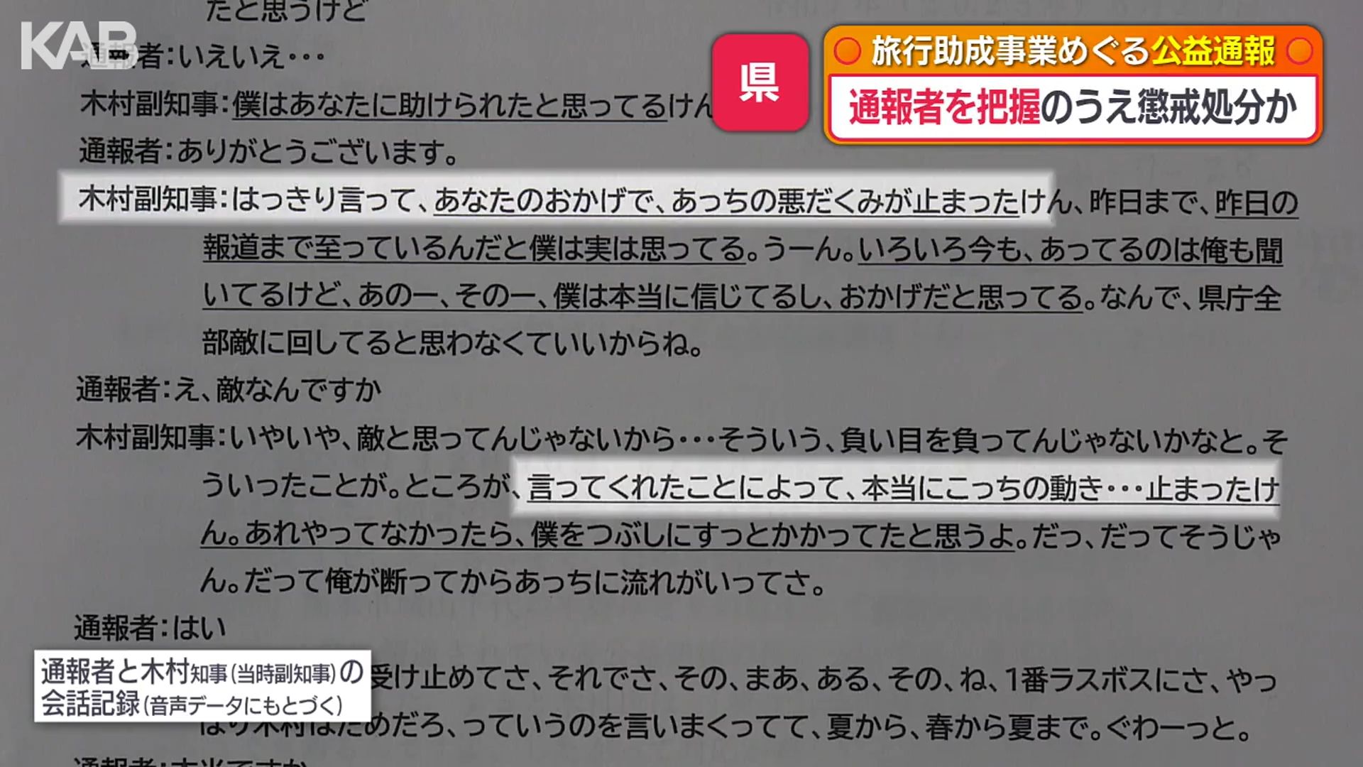 県は「通報者が誰かは知らない」立場を取っていますが、20日に通報者側が公開した木村知事(当時は副知事)とのやり取りによると、県の処分前から通報者を特定していたようなやりとりになっています。