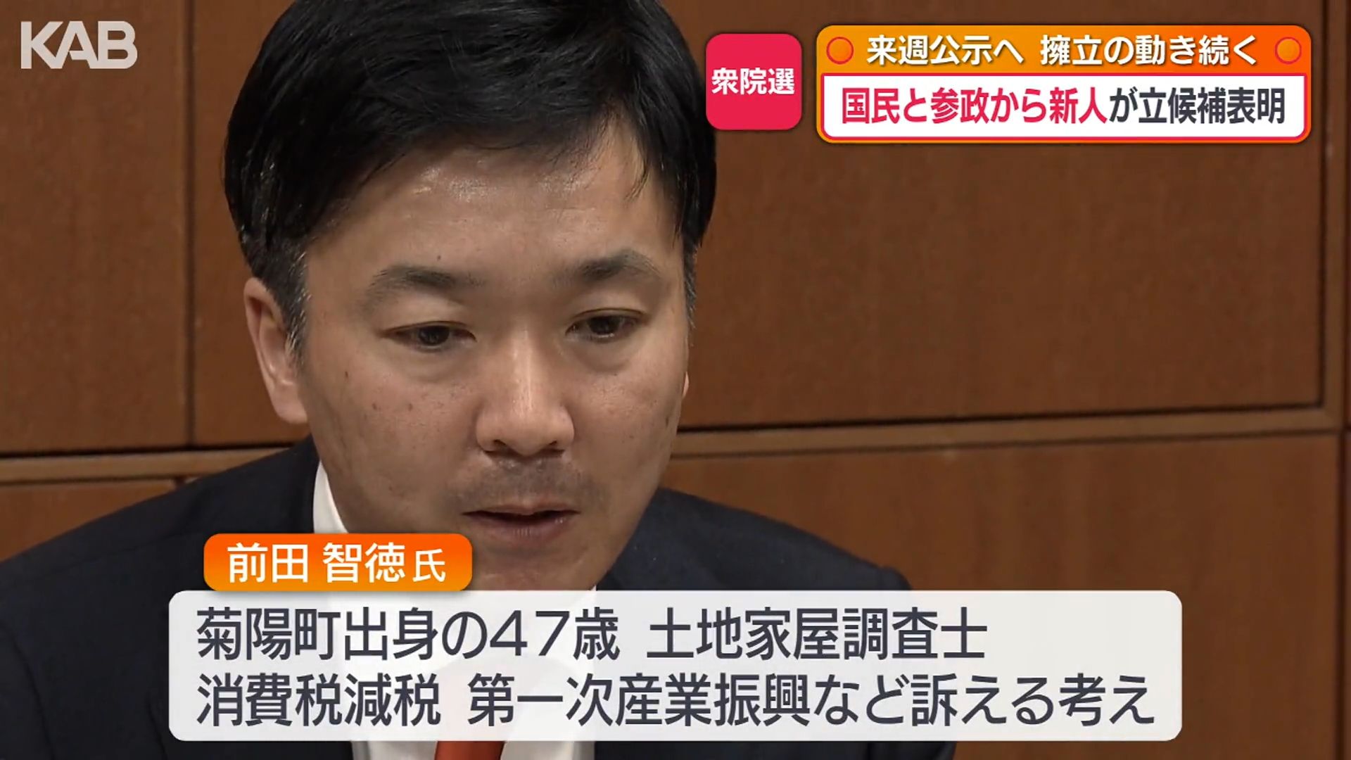 また、参政党は熊本2区に土地家屋調査士の前田智徳さんを、熊本3区に社会福祉法人職員の霍田和佳さんを擁立すると発表しました。いずれも新人です。