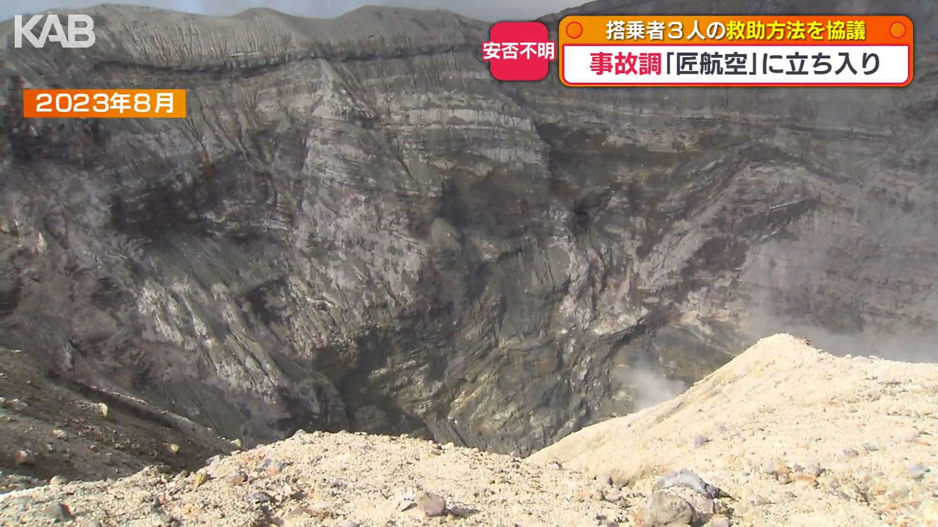 遊覧飛行中のヘリが消息を絶ち、阿蘇中岳の火口内で機体が見つかってから3日。