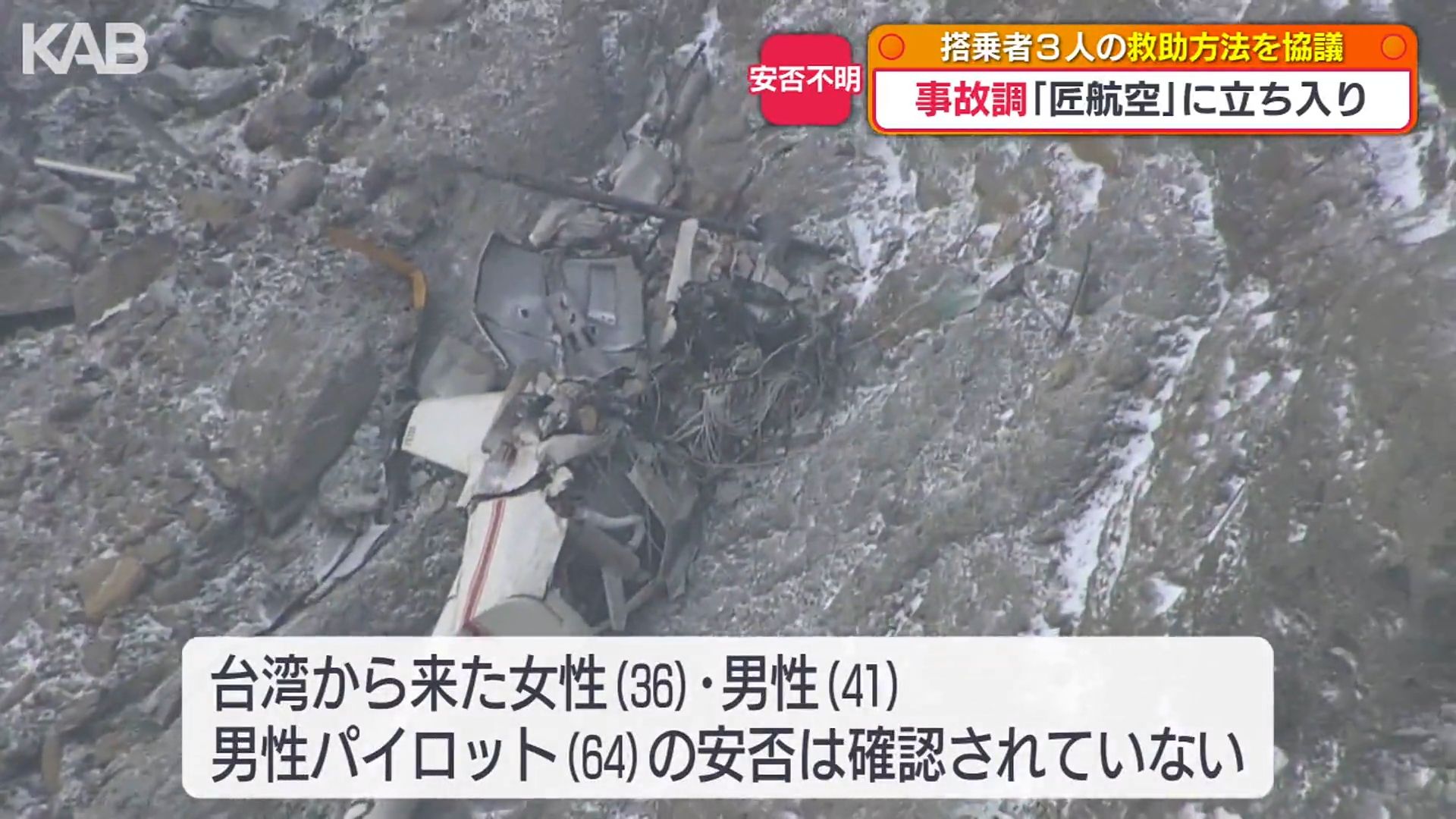 台湾から訪れ、ヘリに搭乗していた36歳の女性と、41歳の男性、64歳の男性パイロットの救助には至っておらず、安否はまだ確認されていません。