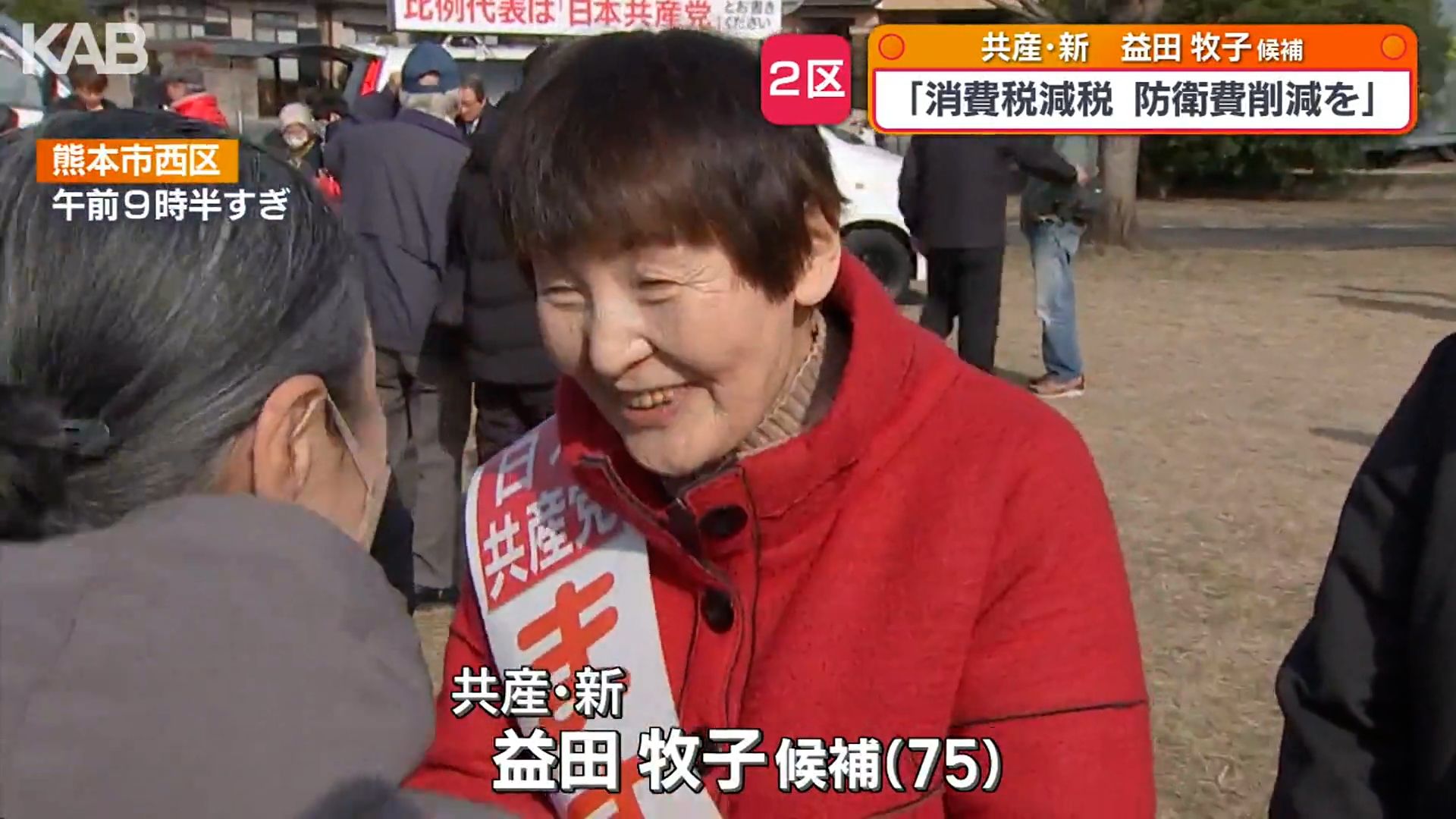 衆院選が27日に公示されました。熊本市西区、南区、荒尾市や玉名市などが選挙区の熊本2区は、共産党の新人、自民党の前職、参政党の新人による三つ巴の戦いです。