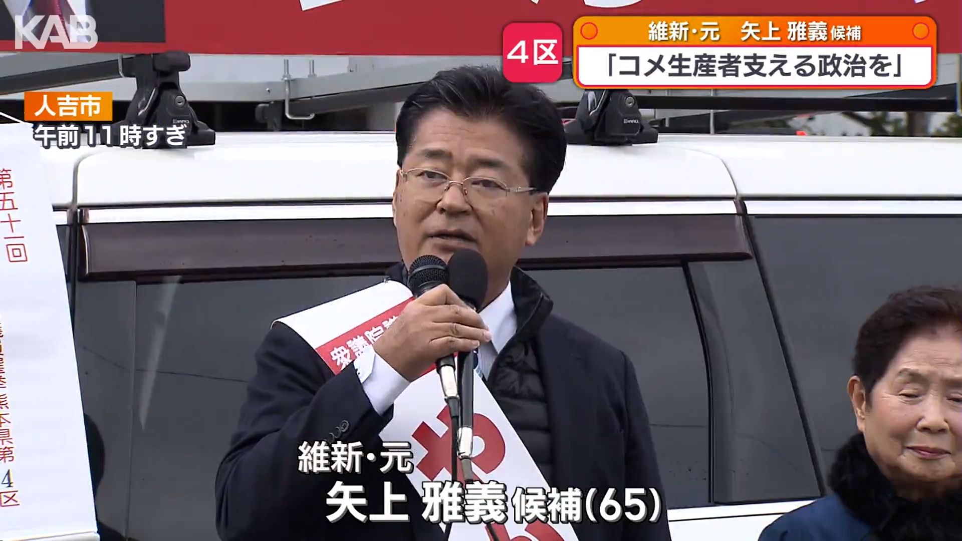 日本維新の会の元職、矢上雅義候補は、人吉市で第一声。党に所属する松野明美参議院議員らの応援を受け、多様な意見を国政に届けたいと話しました。