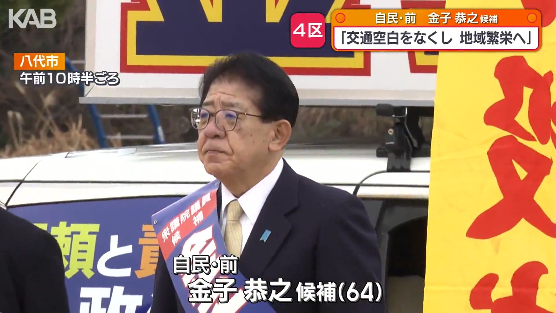 10期目を目指す自民党の前職、金子恭之候補は八代市で第一声を上げ、現職の国土交通大臣として地域の発展に取り組むと強調しました。