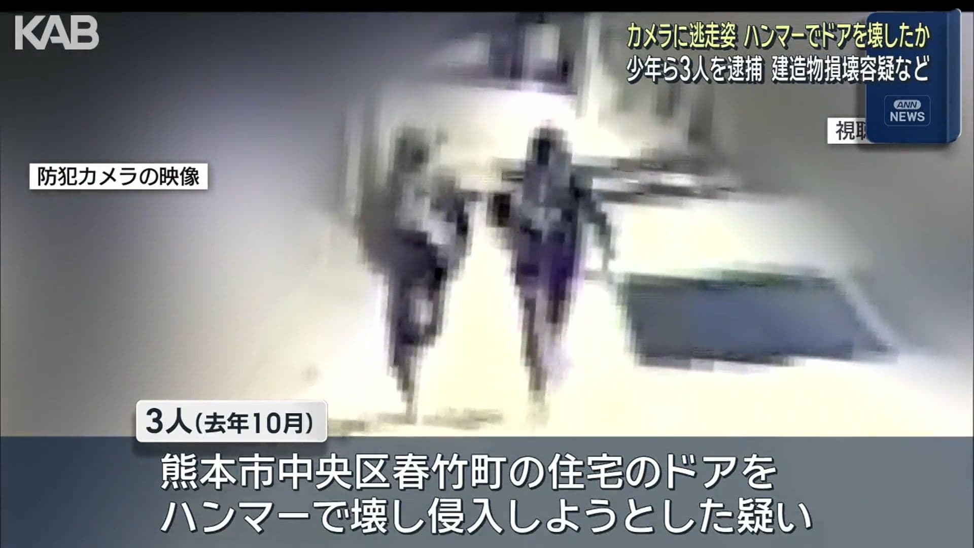 住宅のドアをハンマーで…高校生ら3人を逮捕 逃走の様子が防犯カメラに(1) | KAB ONLINE