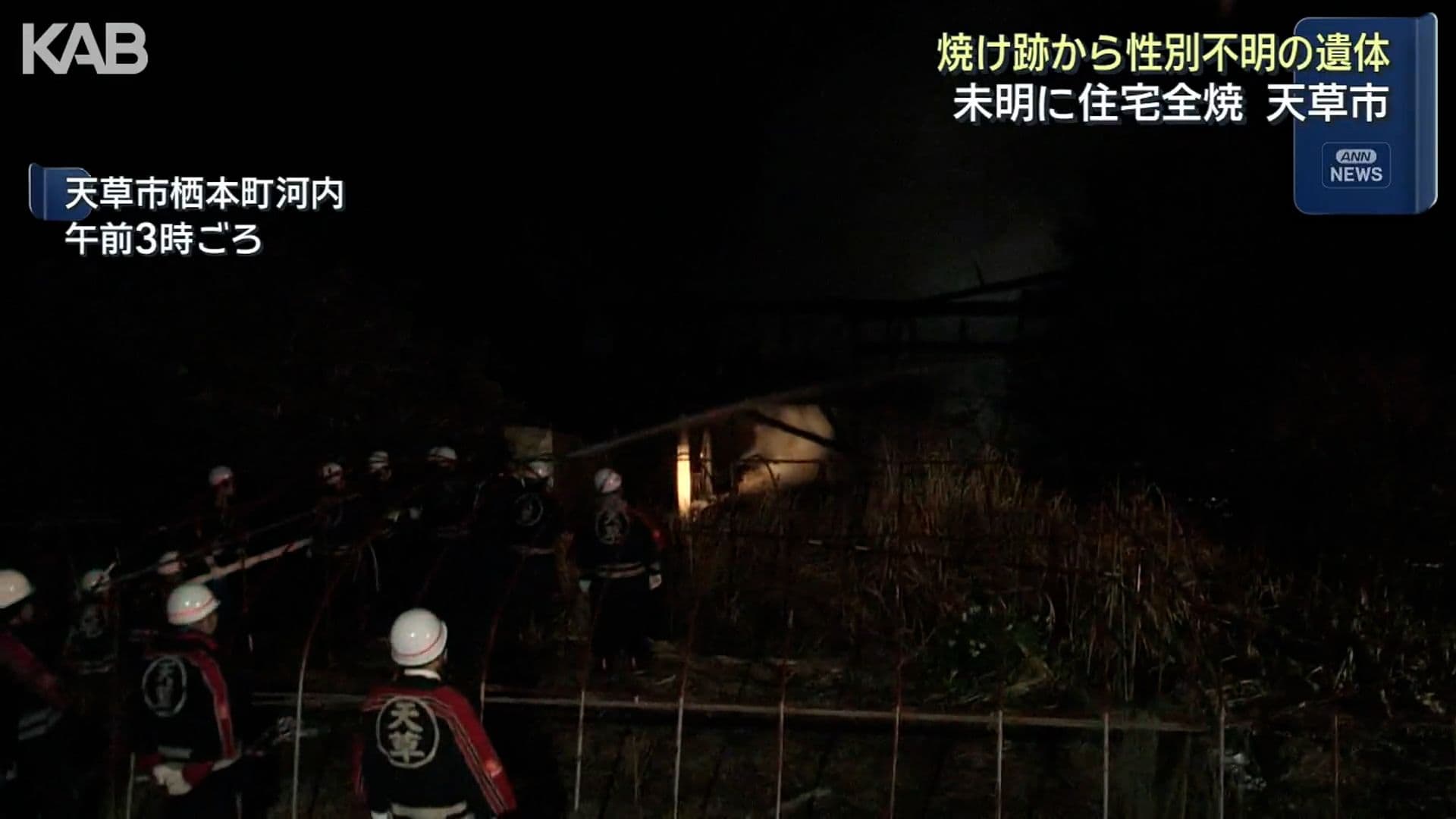焼け跡から1人の遺体 天草市で住宅1棟を全焼