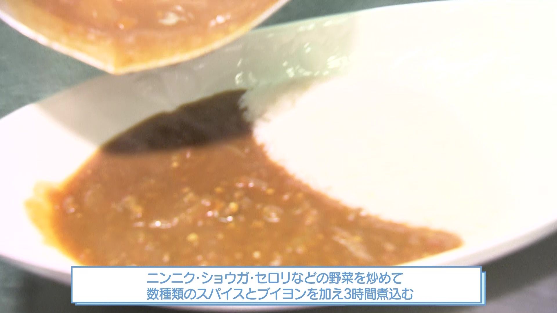 特製エビフライカレーもイチオシ。ニンニク・生姜・タマネギ・ニンジン・セロリをトロトロになるぐらいまで炒めて、ブイヨンを加えて3時間煮込んだカレーで、フルーティな味わいです。 揚げたてサクサクのエビフライをトッピングしたこだわりの1皿です。