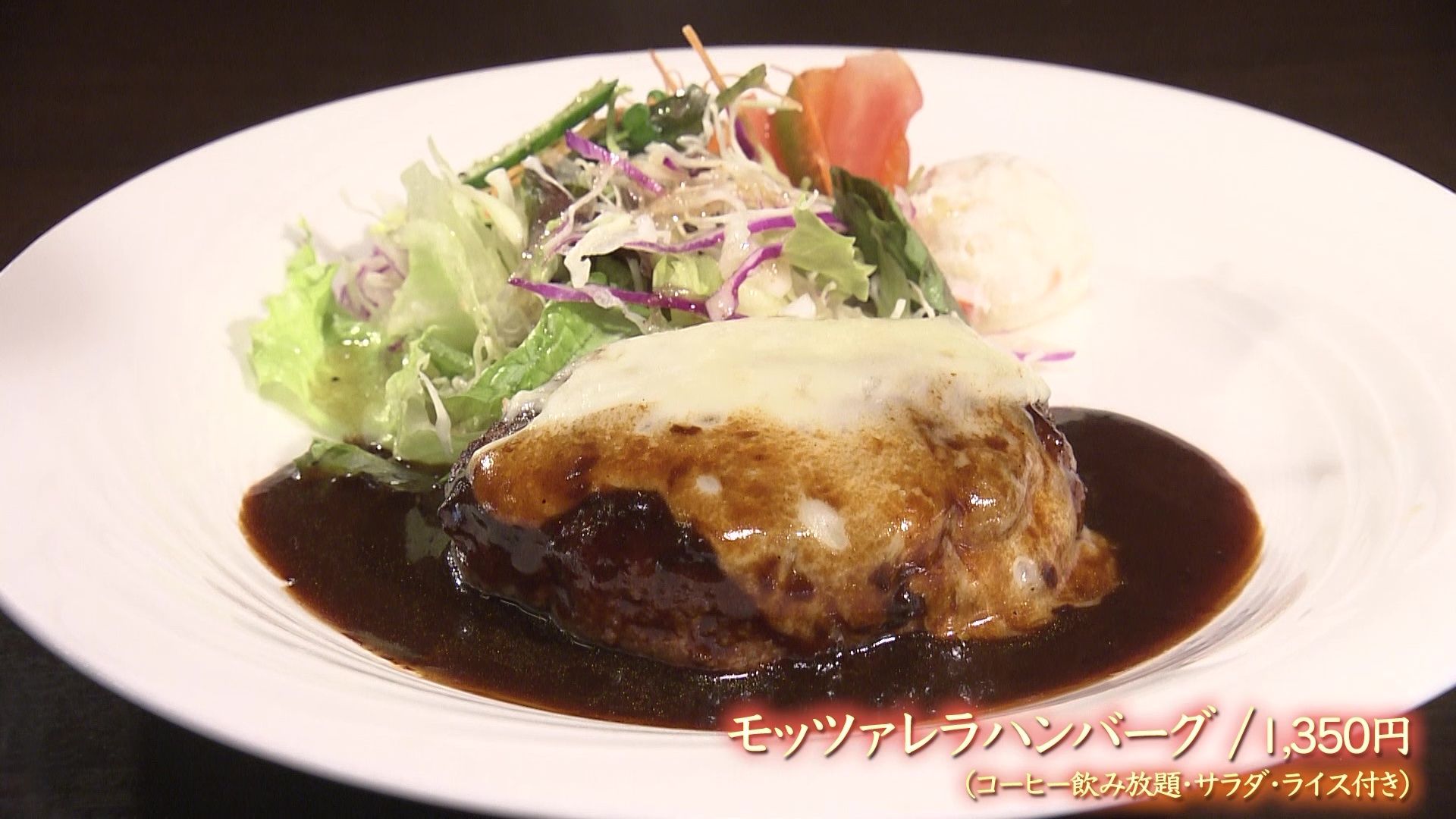 お店自慢の人気メニューは「モッツァレラハンバーグ」。