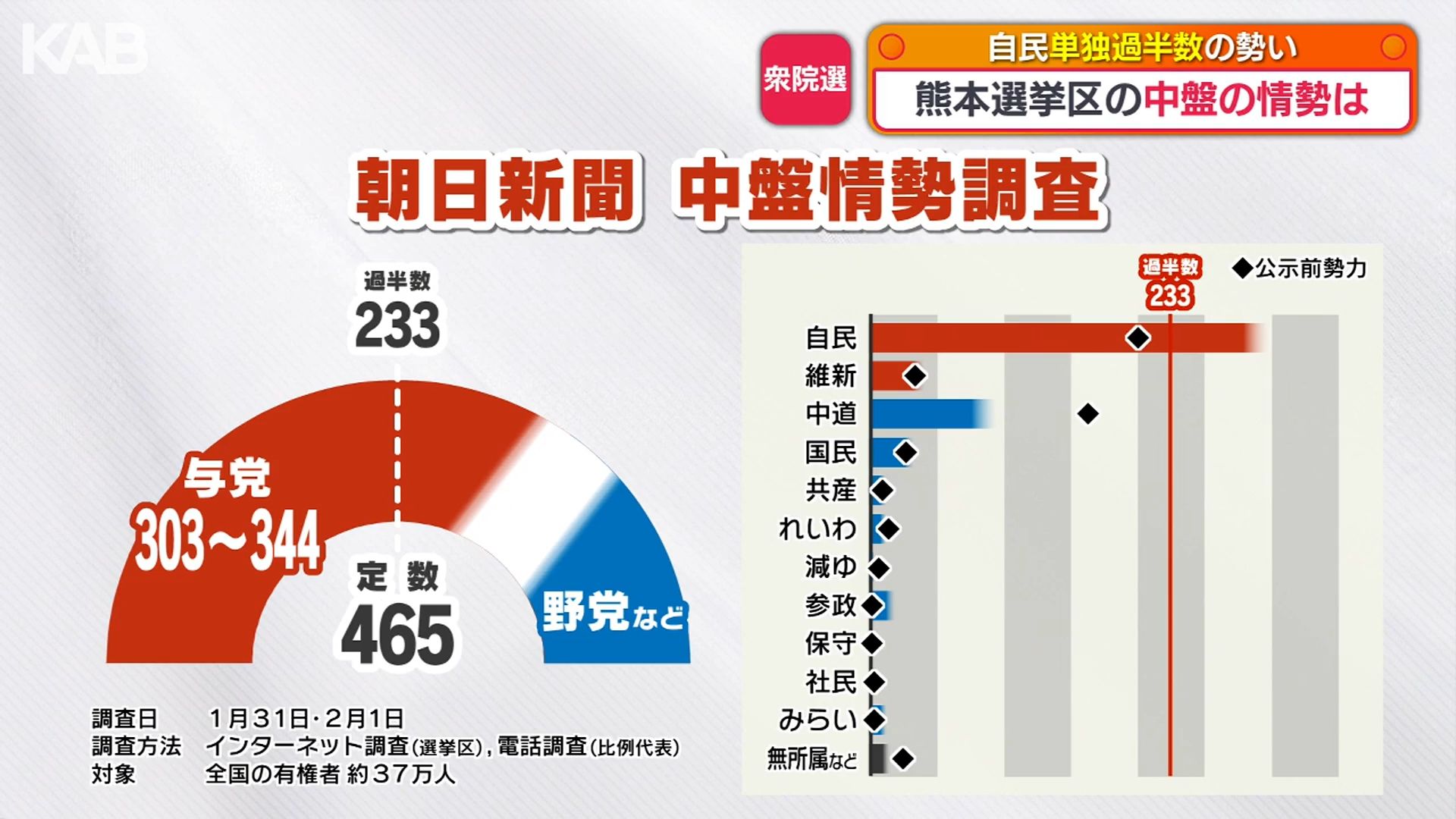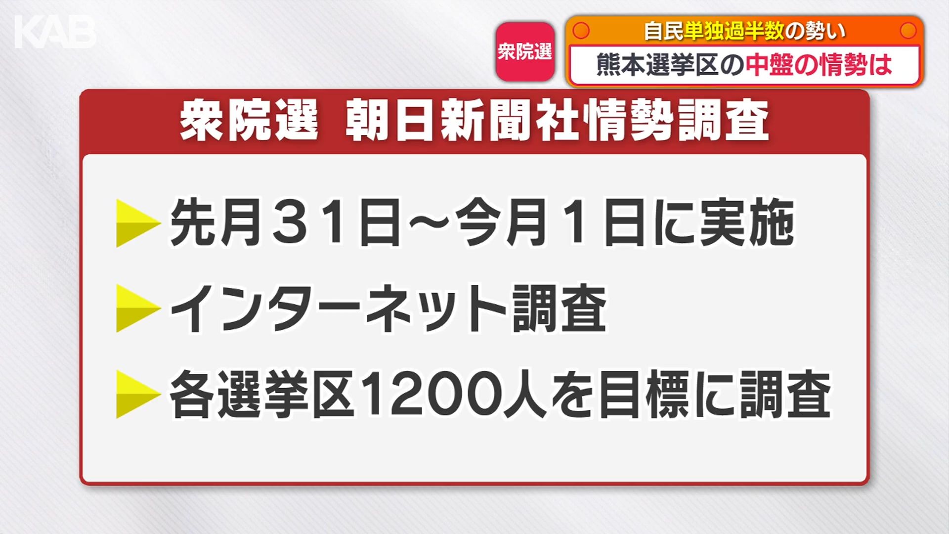 衆議院議員選挙の投開票まで1週間を切りました。朝日新聞の情勢調査では、自民党が単独過半数を占める勢いとなっています。熊本選挙区の中盤の情勢は―