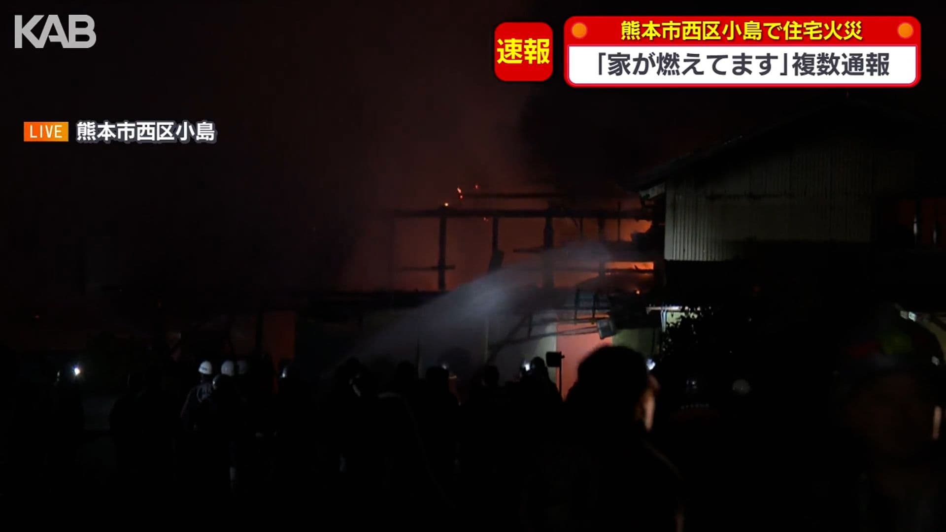 「家が燃えている」熊本市西区で住宅火災 消火活動中