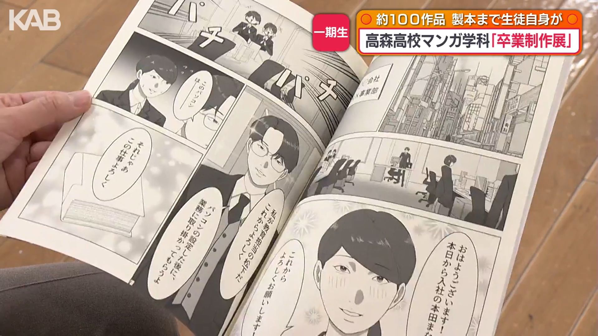 全国の公立高校で初めて設けられた熊本県立高森高校マンガ学科の一期生による卒業制作展が始まりました。