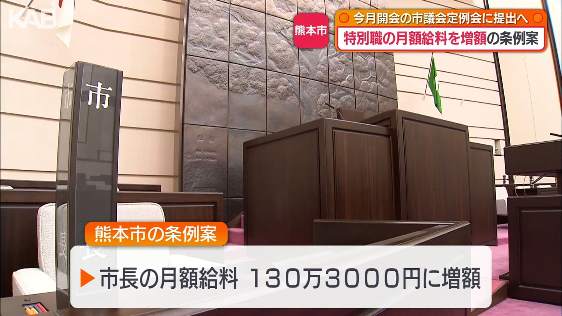 熊本市特別職の月額給料引き上げを議会提案へ 市長は据え置き