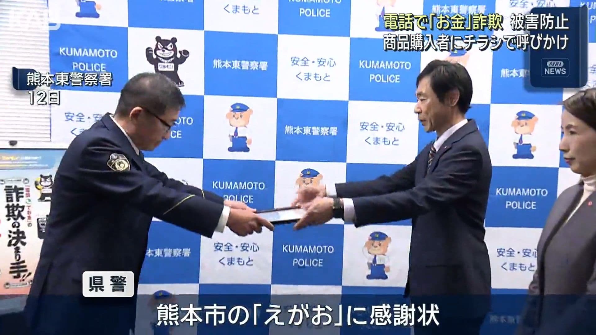 商品購入時に“啓発”チラシ送付 「電話で『お金』詐欺」防止に協力したとして感謝状