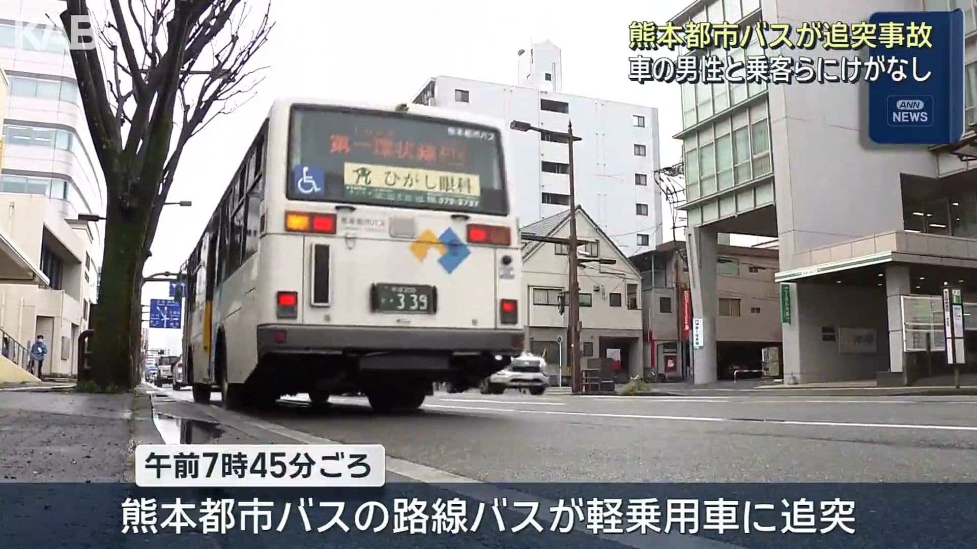 熊本市で路線バスが軽乗用車に追突 約30人の乗客らにけがなし
