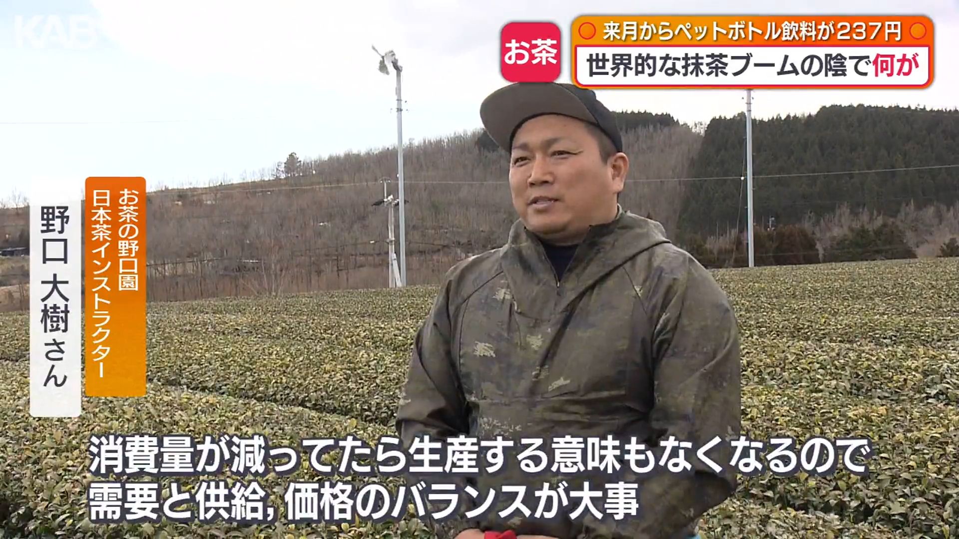 「限られた生産量の中で、世界的な抹茶ブームが起きて、そこにお茶の生産がシフトしたが、それでも抹茶が足りないから値段は高騰、煎茶の生産量も減って、そこも高騰している」