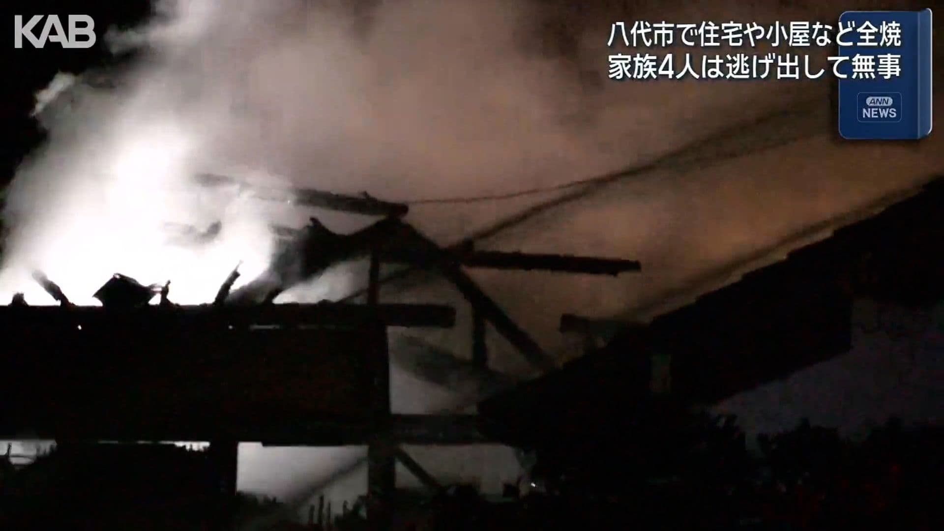 八代市で住宅と小屋など全焼 住人らは逃げ出して無事