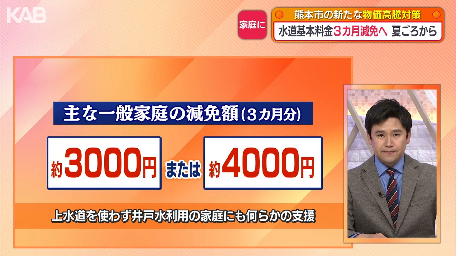 実際にどれくらいの負担軽減となるのか。熊本市上下水道局によりますと、一般家庭で、およそ3000円または4000円が減免の対象となる見込みです。