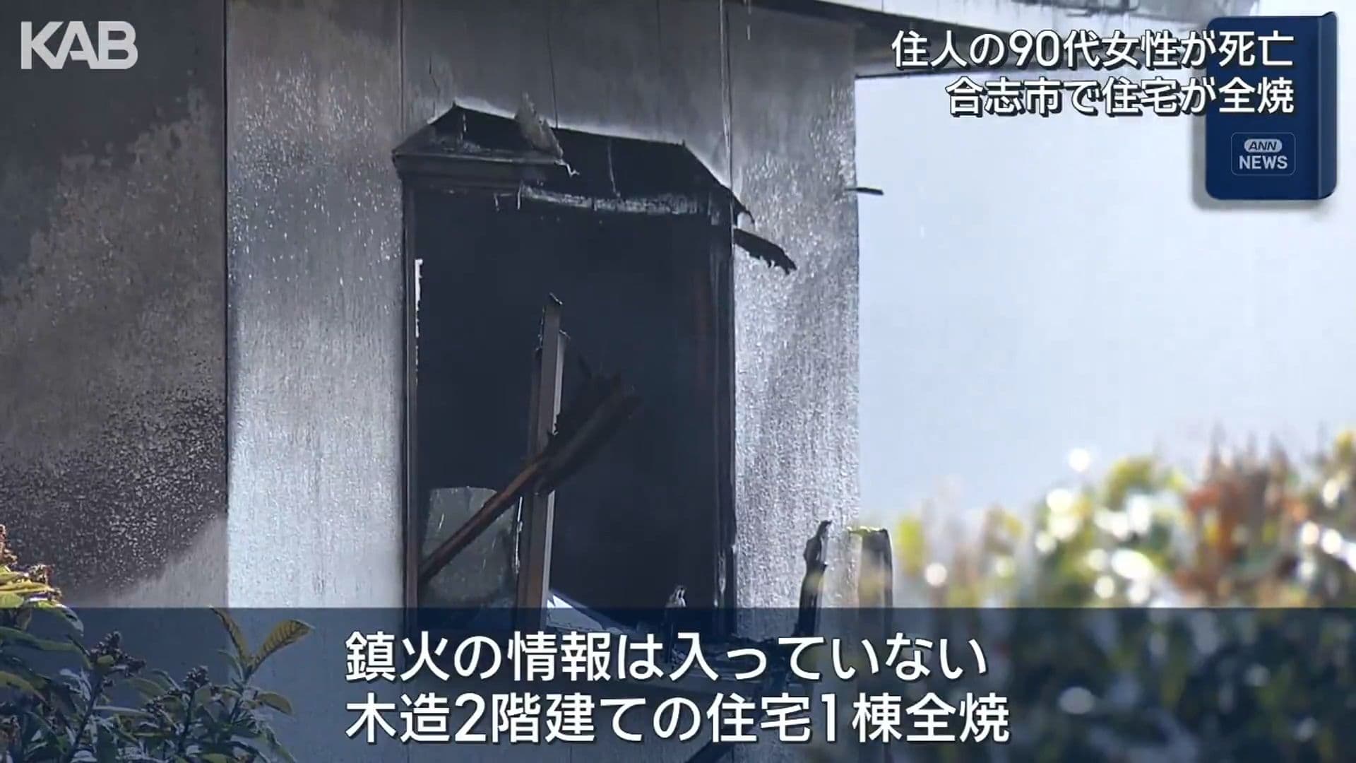 90代女性が死亡 合志市で住宅全焼「仏壇が燃えて…」