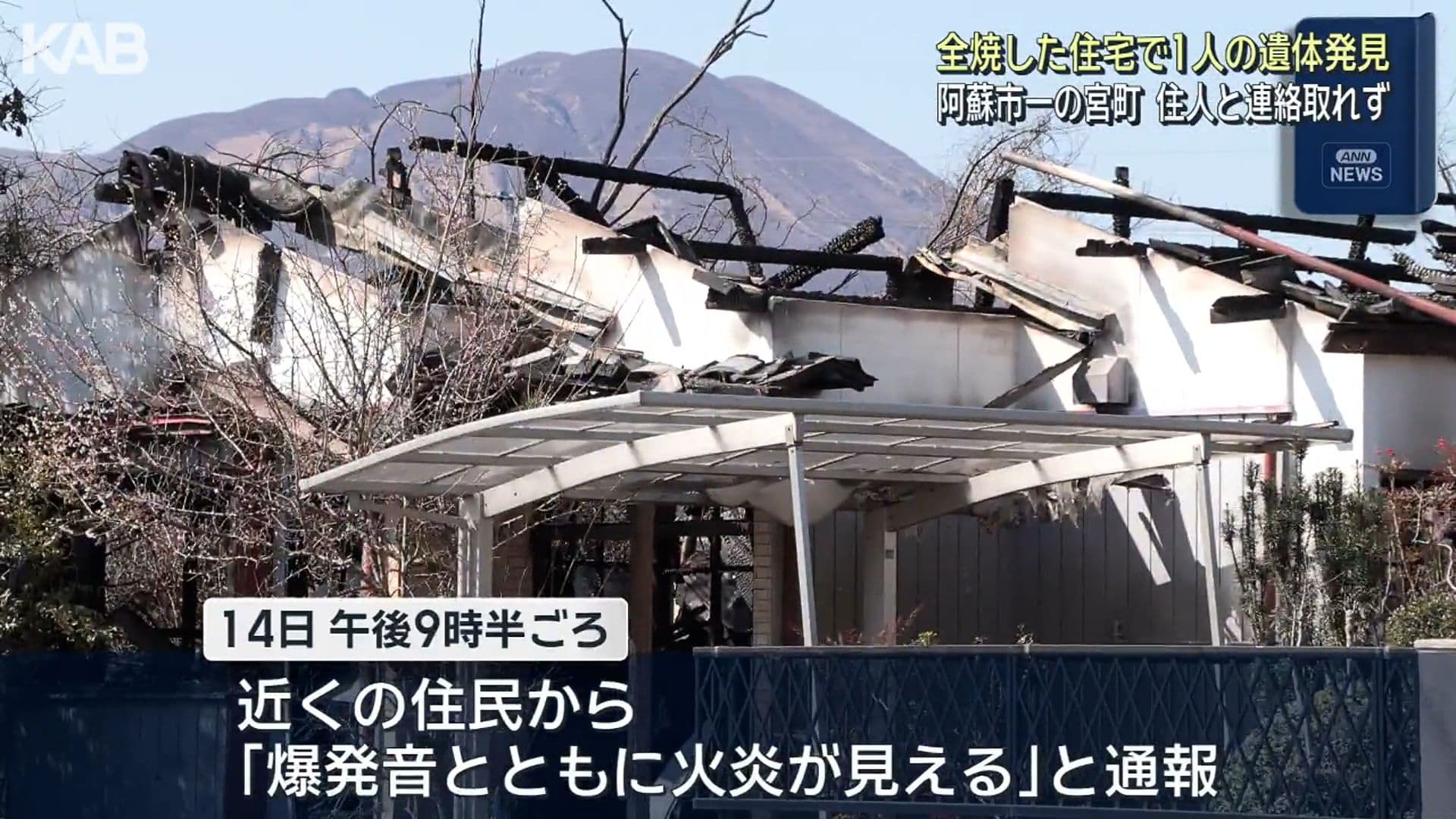 焼け跡から1人の遺体「爆発音とともに火炎が…」阿蘇市で住宅全焼