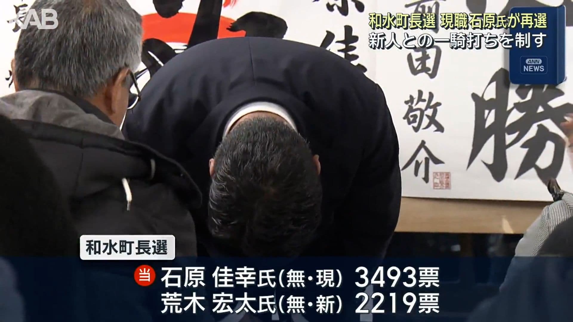 和水町長選で石原佳幸氏が再選 子育て支援や高齢者福祉の充実を