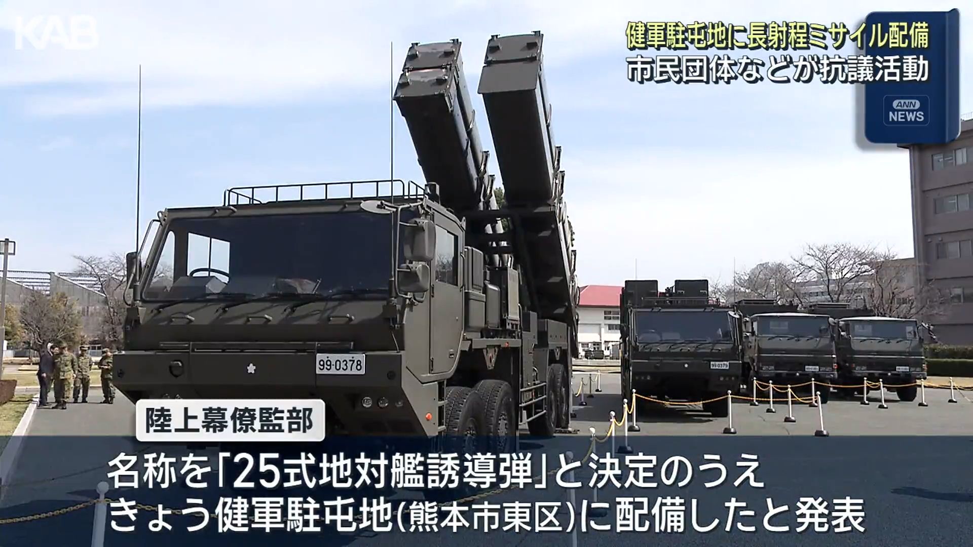 陸上幕僚監部は先ほど長射程ミサイル「12式地対艦誘導弾能力向上型」について、名称を「25式地対艦誘導弾」と決定したうえで、31日、熊本市東区の健軍駐屯地に配備したと発表しました。