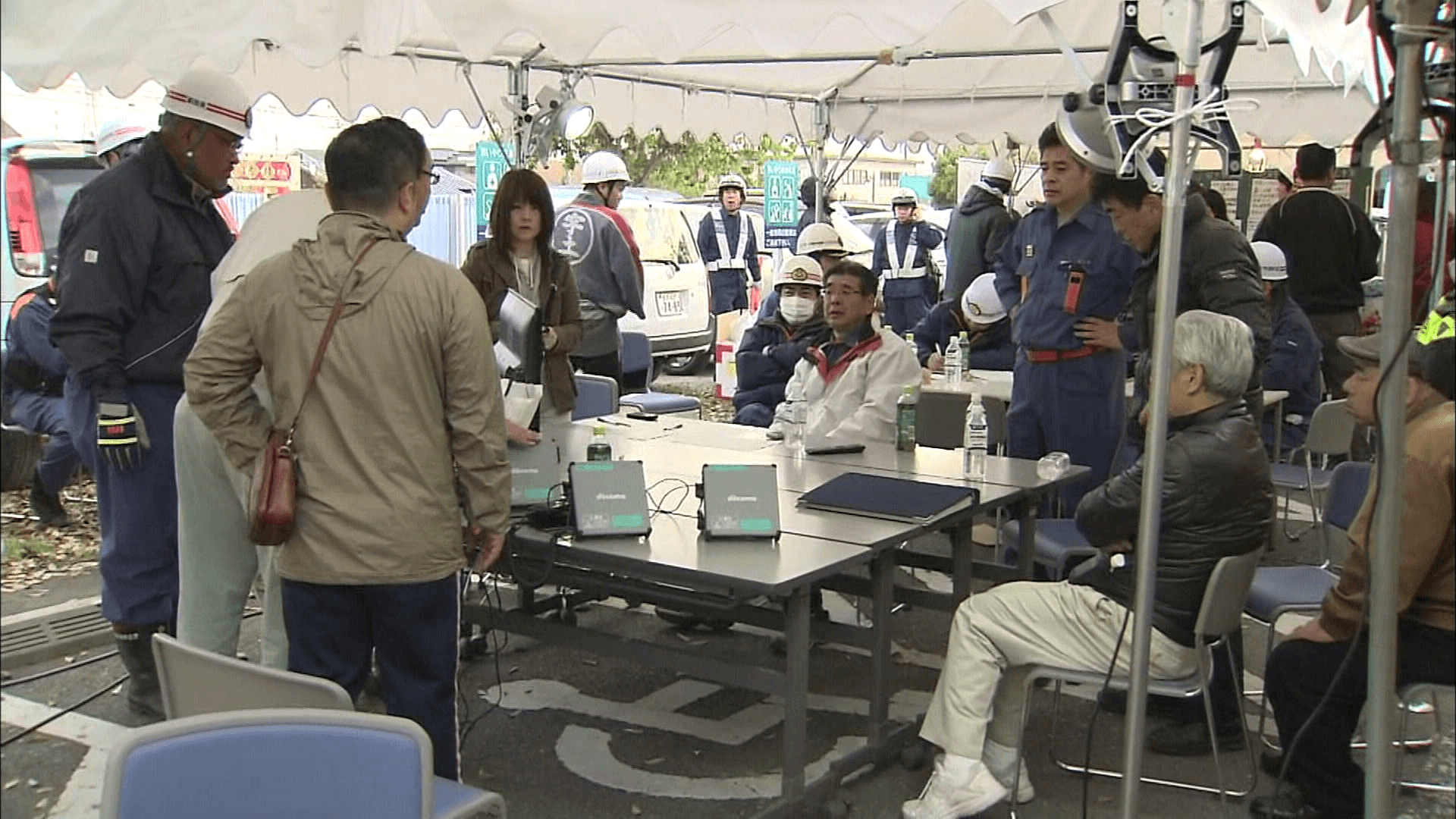幸い、人的被害はなく、災害対策本部を置いていた別館も使用できる状態でしたが、本庁舎が倒壊した場合は、危険が及ぶ可能性があるとして、対策本部をテントに移設しました。