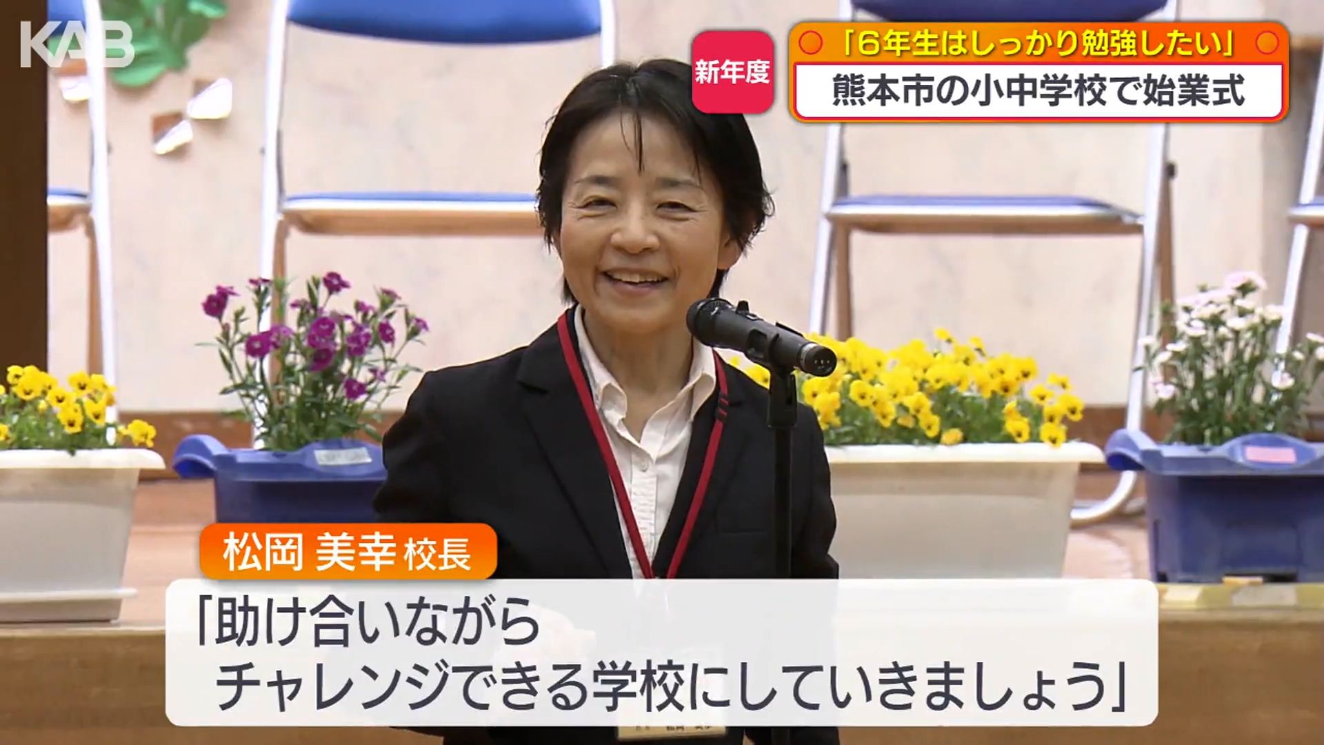 松岡美幸校長は「助け合いながら、チャレンジできる学校にしていきましょう」と今年度の目標を伝えました。