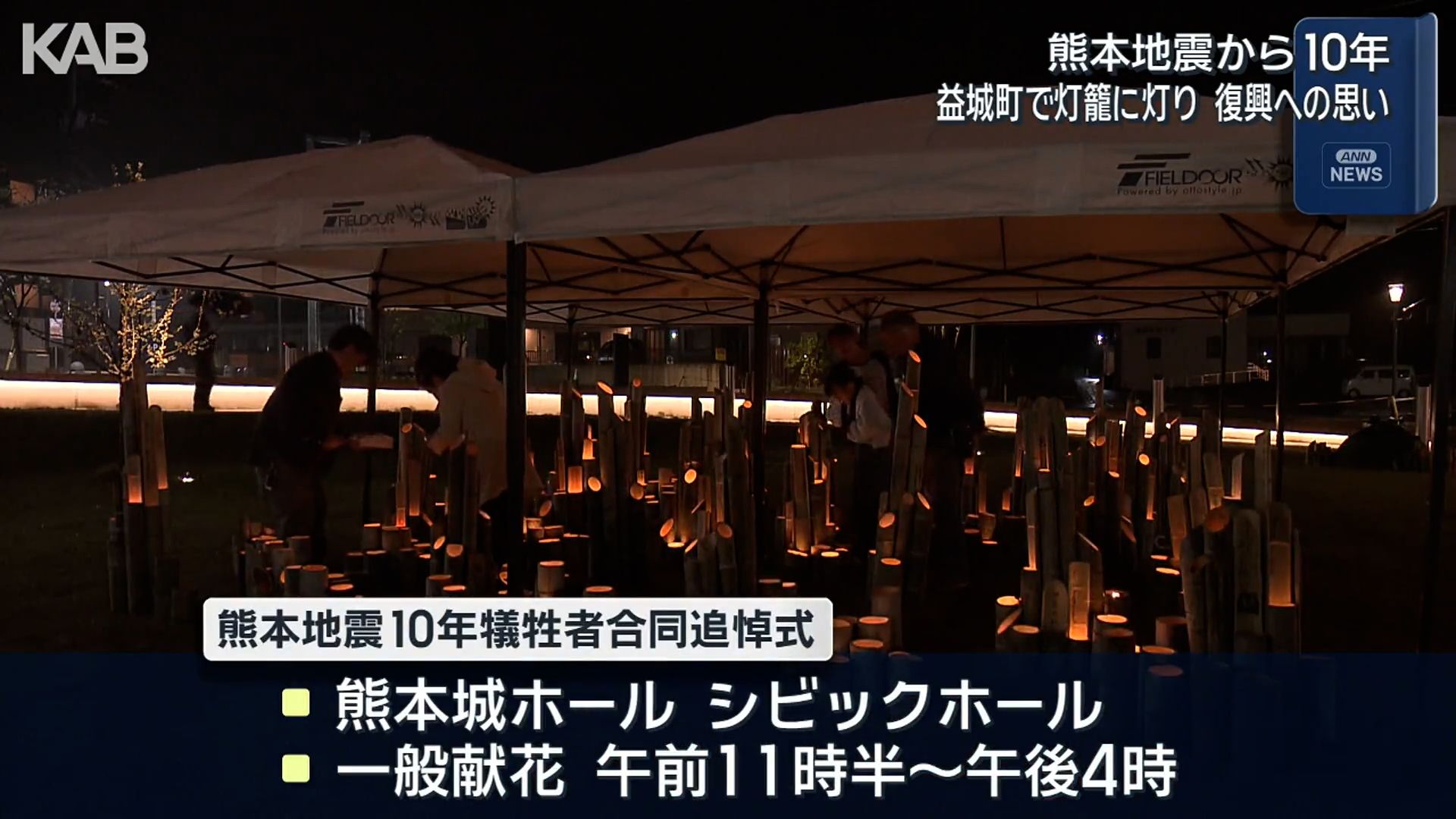 熊本地震から10年。甚大な被害を受けた熊本県益城町で、14日夜、住民らが祈りを捧げました。
