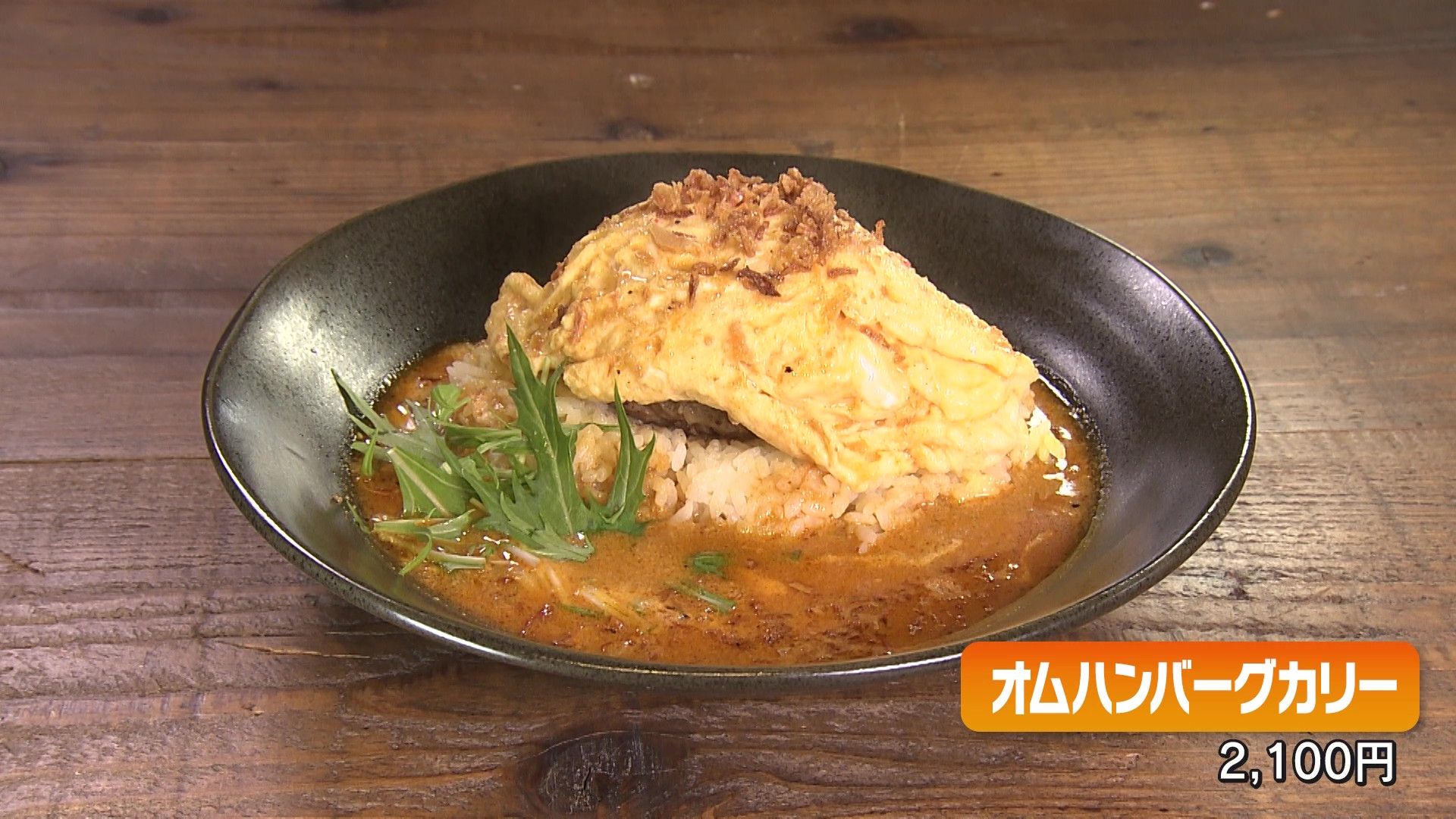 「オムハンバーグカリー」も人気。グルテンフリーのオリジナルカレーをベースに、ふんわりとした卵とジューシーなハンバーグがのっています。