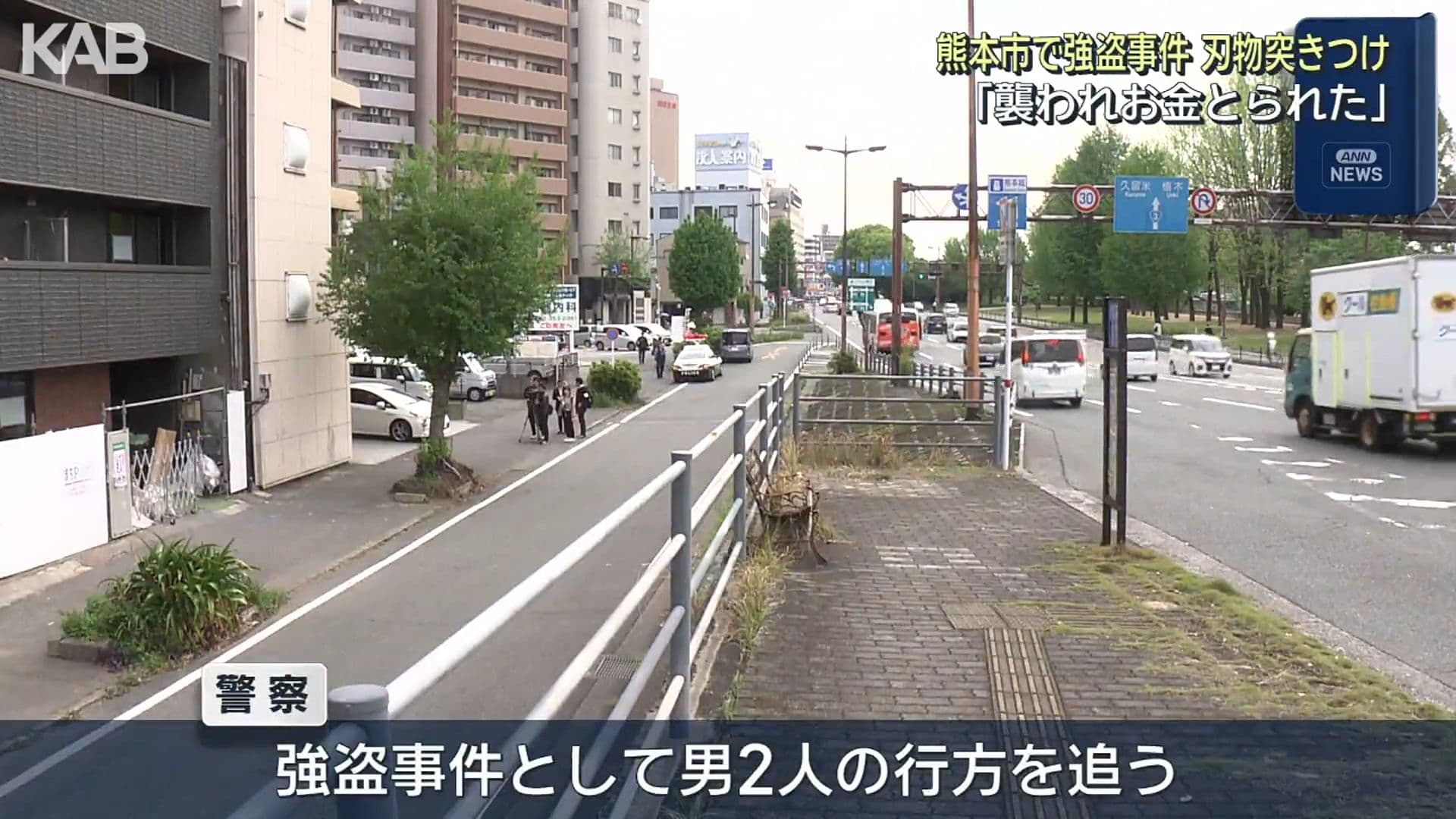 片言の日本語で「お金ください」現金奪う…2人組の男逃走中 熊本市の路上で強盗事件