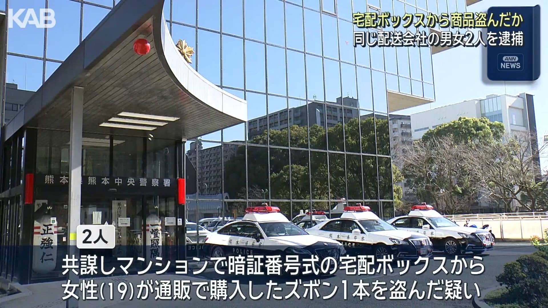 マンションの宅配ボックスから商品盗んだ疑い…配送業者2人を逮捕 防犯カメラで浮上(1) | KAB ONLINE