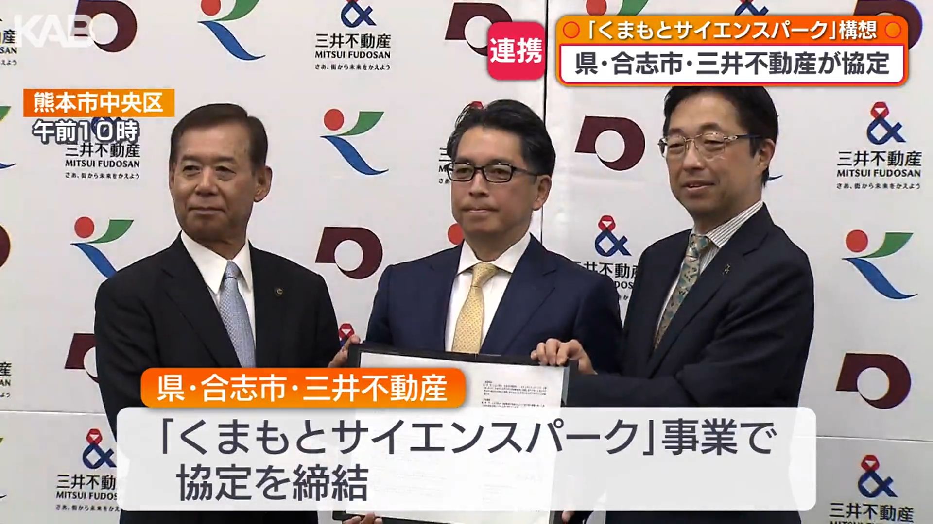 半導体関連企業の集積地となる「くまもとサイエンスパーク」を推進するため、熊本県と合志市、三井不動産が協定を結びました。