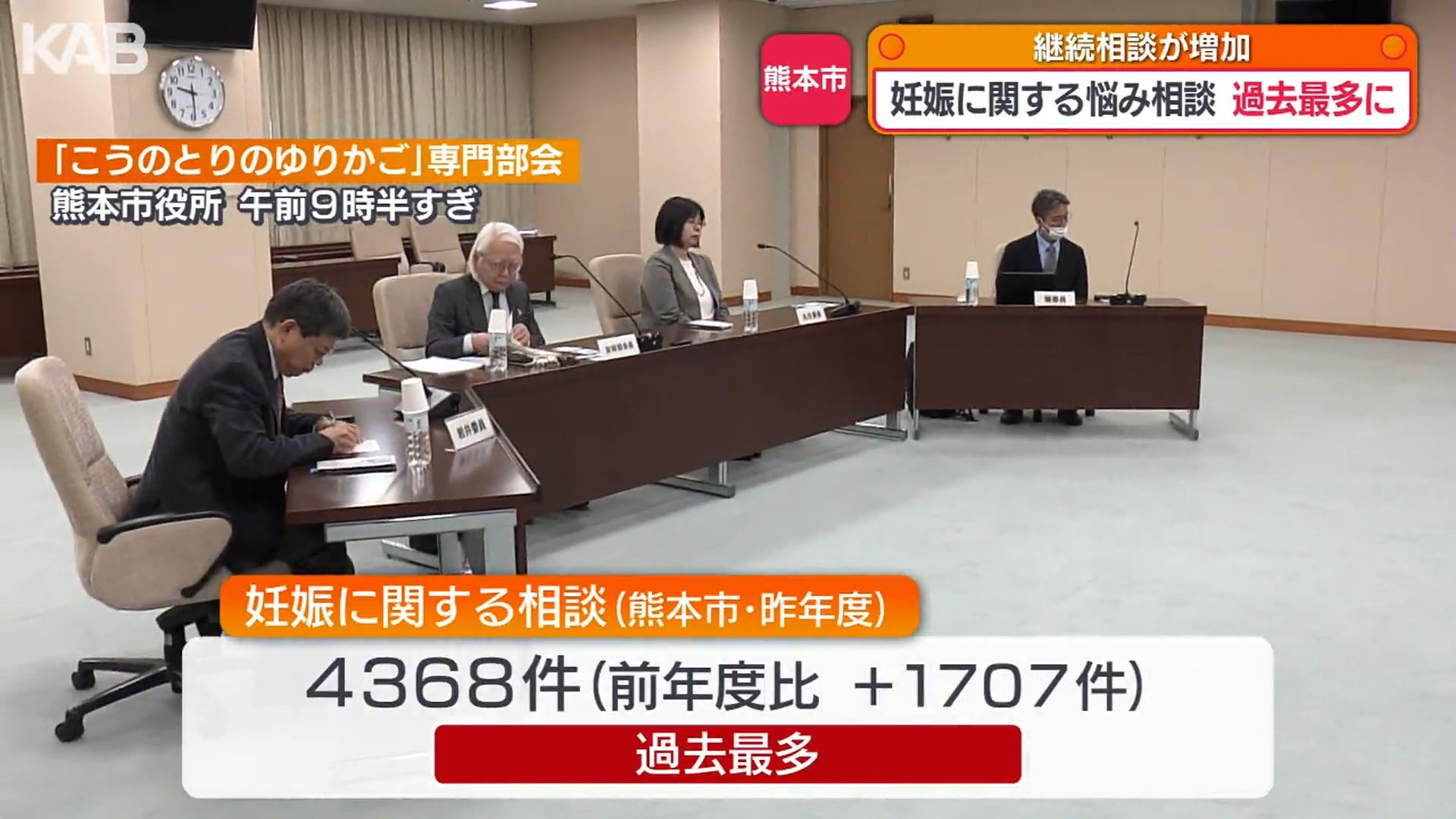 2025年度、熊本市の窓口に寄せられた妊娠に関する相談は4368件で、前年度から1707件増加し、過去最多となったことが分かりました。