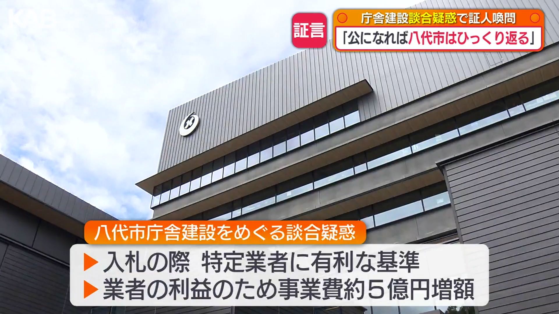 熊本県八代市の新庁舎建設工事の談合疑惑をめぐり、28日、2回目の証人喚問がありました。
