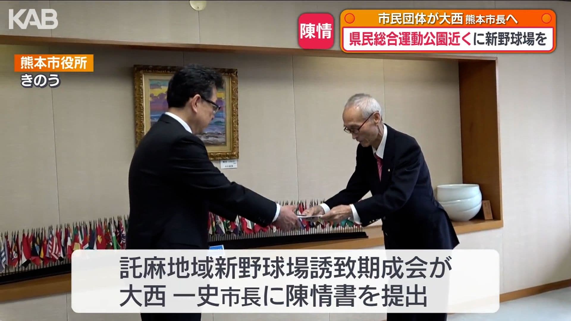 新球場の誘致めぐり熊本市長に陳情書「運動公園の近隣エリアに」