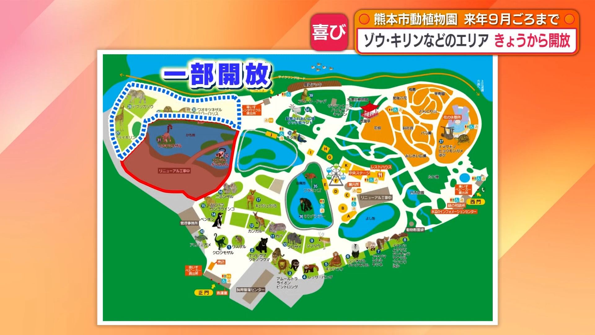 工事は、去年11月から一帯を立ち入り禁止にして行っていましたが、支障がない範囲で工程を調整し、29日から10種の動物を見ることができるようにしたということです。