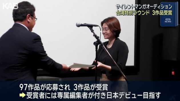 せりふを使わないサイレントマンガのオーディション台湾特別ラウンドの授賞式が熊本県高森町でありました。