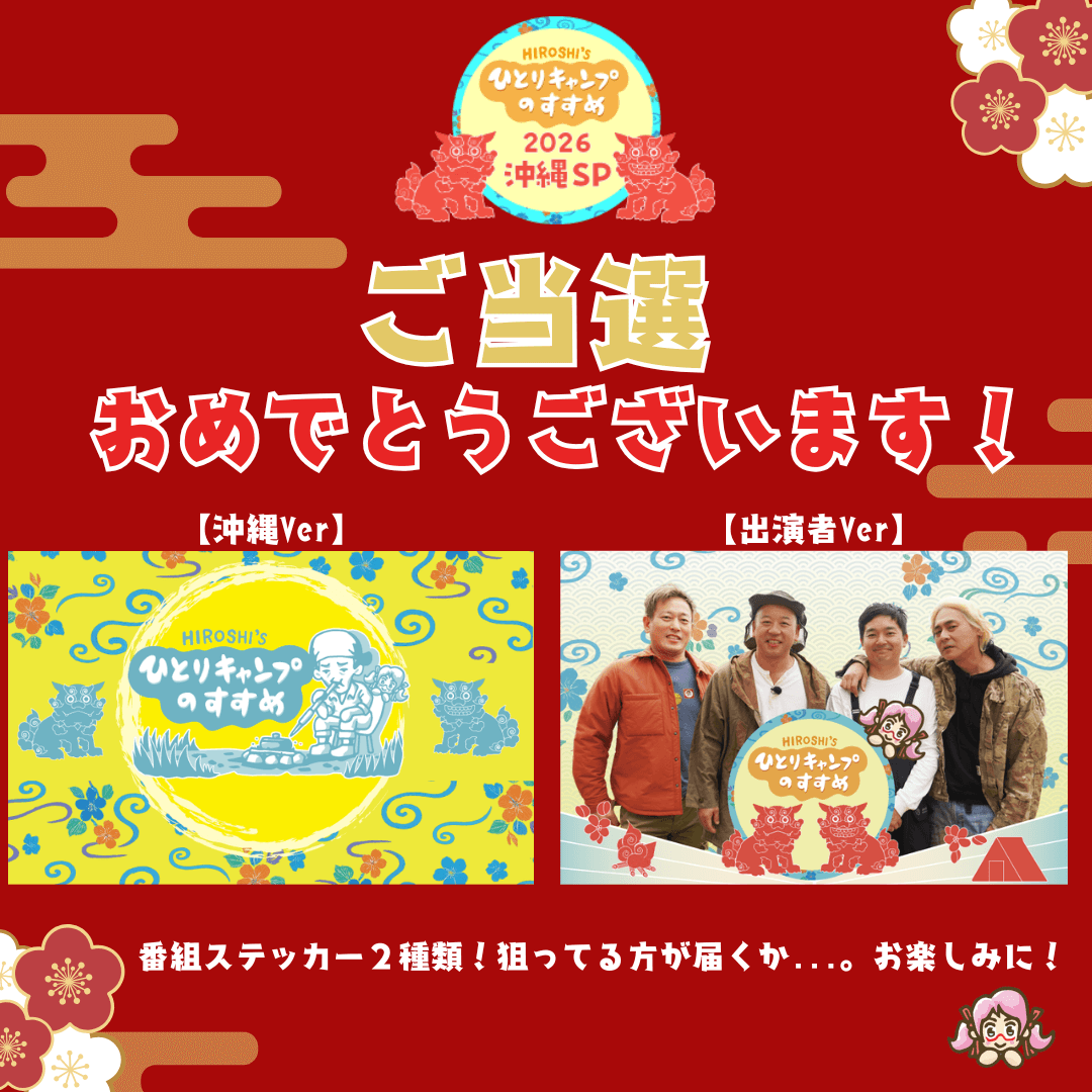 ホーム当選者専用ページ[ヒロシのひとりキャンプのすすめ 沖縄SPステッカークリアファイルプレゼントキャンペーン]