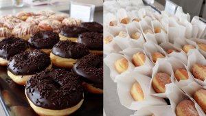 ドーナツは、ふわふわタイプのものと ザクザクタイプのものを中心に 20種類ほどが店頭に並んでいます。