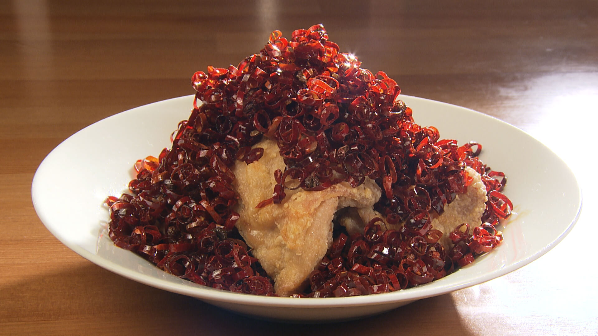 ランチのおすすめは「酢豚」。また、20年前からある名物「赤兎馬HOT唐揚」は、唐辛子に包まれたビジュアルが衝撃的な、辛さと旨さ十分のメニューです。