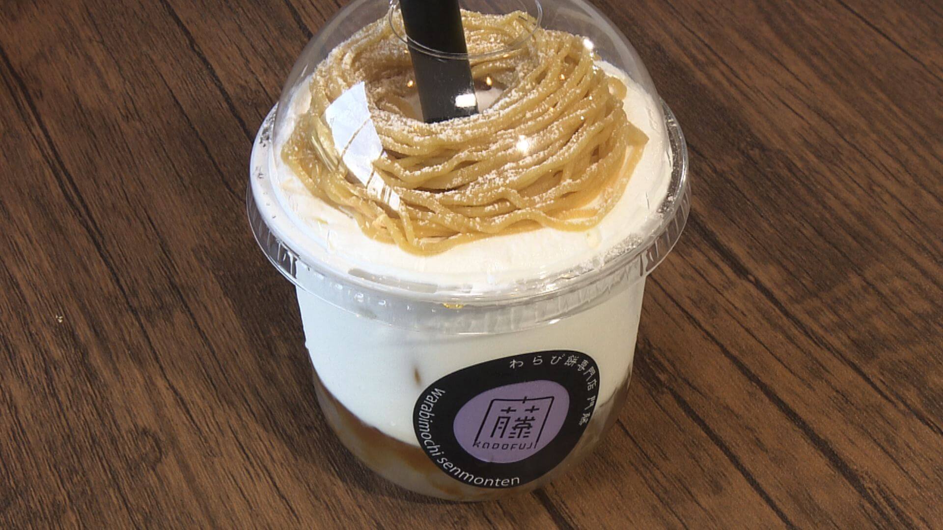わらび餅のドリンク「WARABI-TA(ワラビータ)」は、門藤の自信作。季節限定の「安納芋のワラビータ」もあります。