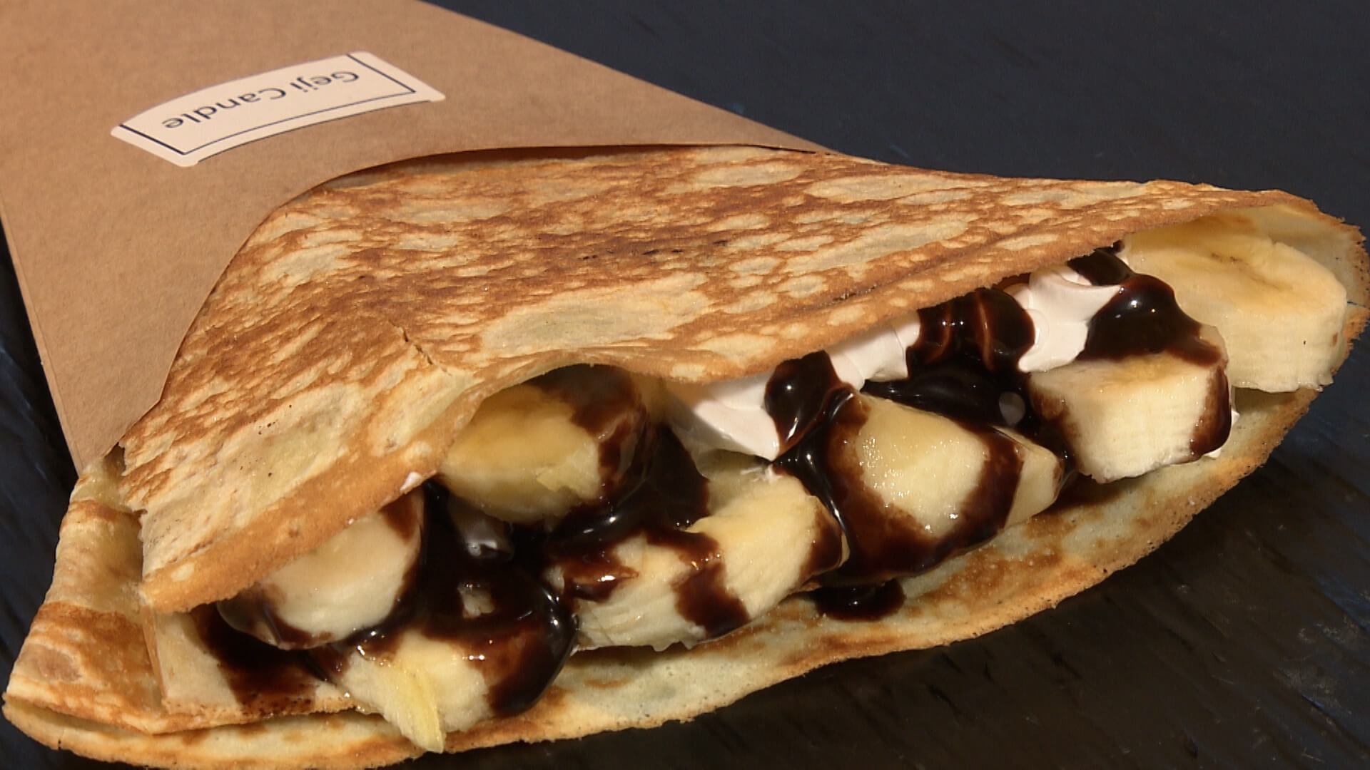 パリパリのクレープは「シュガーバター」や「クリームチョコバナナ」が人気です。