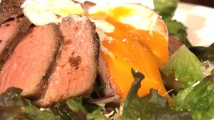 特にオススメなのが、低温調理でじっくり仕上げたローストビーフを乗せたローストビーフ丼です。