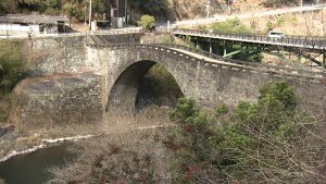 全長約90mの巨大な石橋で、石造りの単一アーチ橋としては日本最大級。