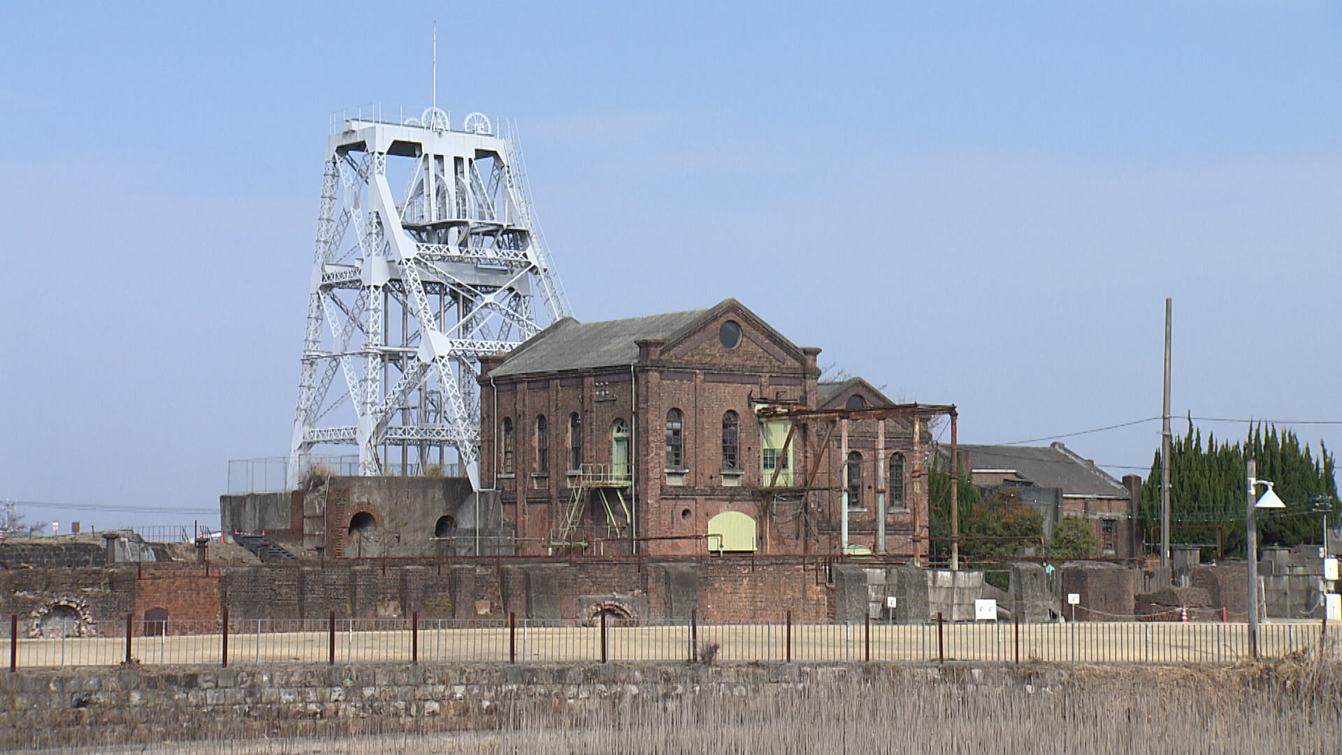 当時のまま保存されているレンガ造りの建物や、巨大な巻揚げ機などが見学できます。