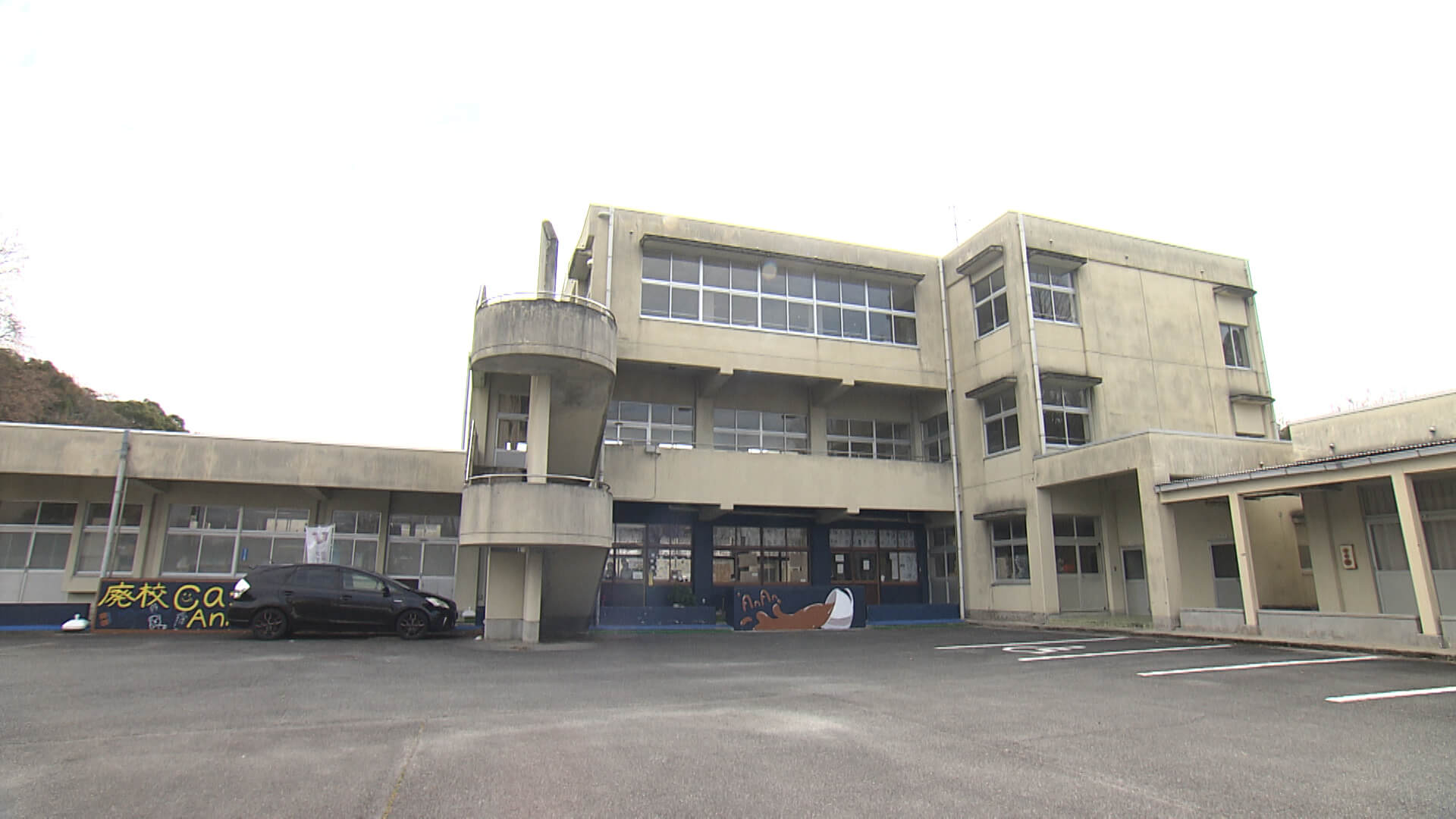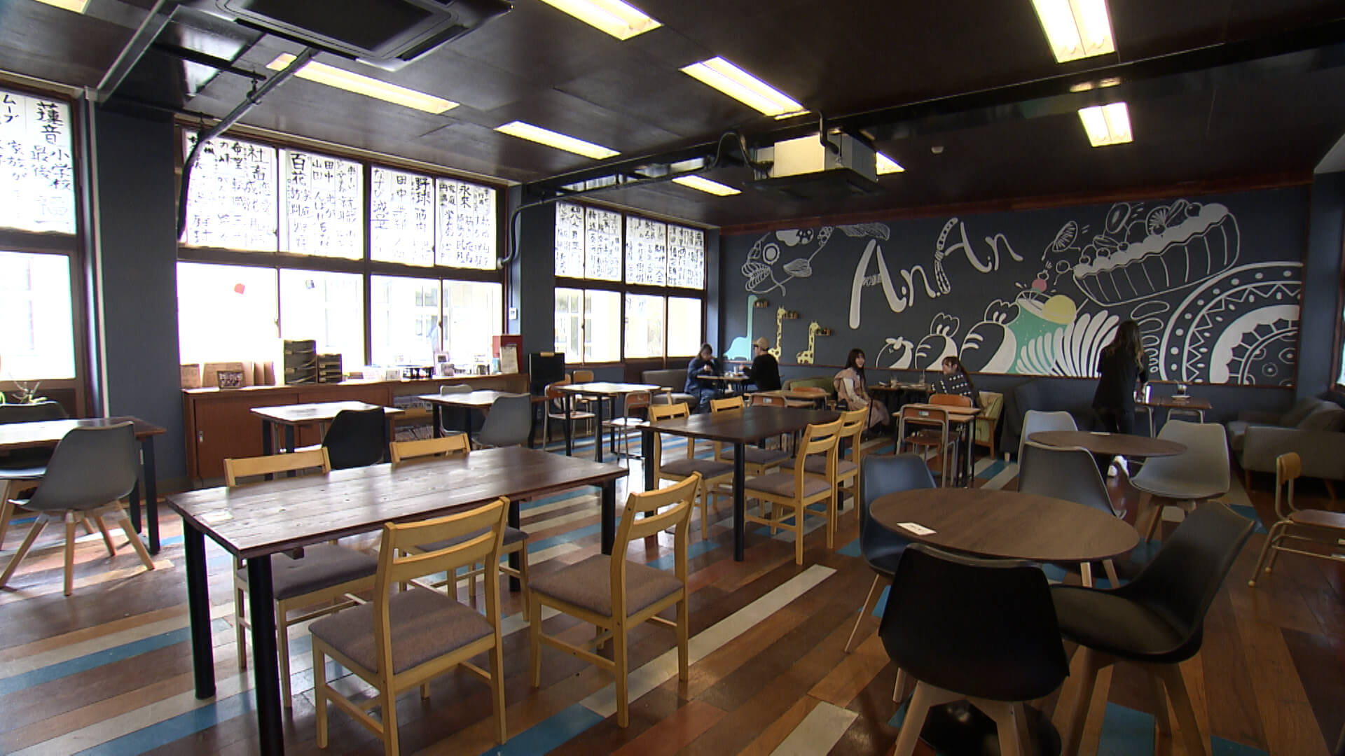 2008年に閉校した荒尾第五中学校。その校舎に2024年にオープンしたカフェで、夜は居酒屋に変わります。